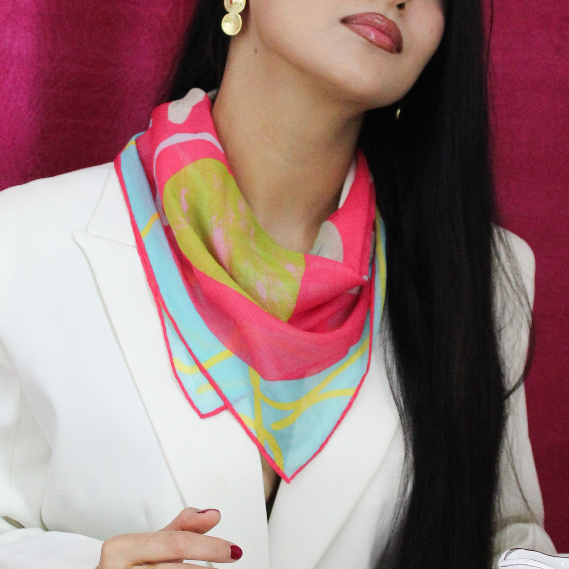 Fularlarımız, dijital ortamda özenle çizilen özel tasarımlardan oluşur ve sınırlı sayıda üretilir.