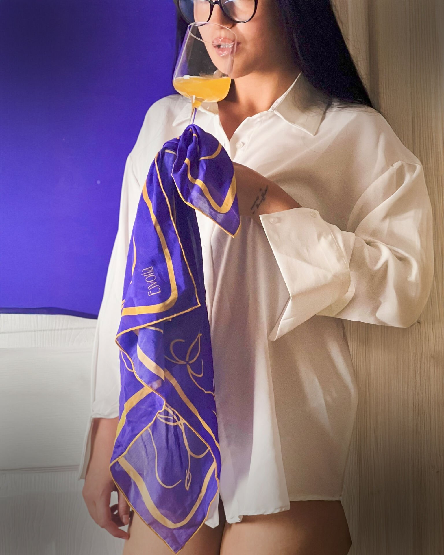 Mor rengin asil ve güçlü enerjisi fularla buluşunca ortaya göz alıcı bir şıklık çıkmış. Kombinlerimi adeta tamamlayan, ruhuma da canlılık katan çok özel bir aksesuar oldu teşekkürlerrrr